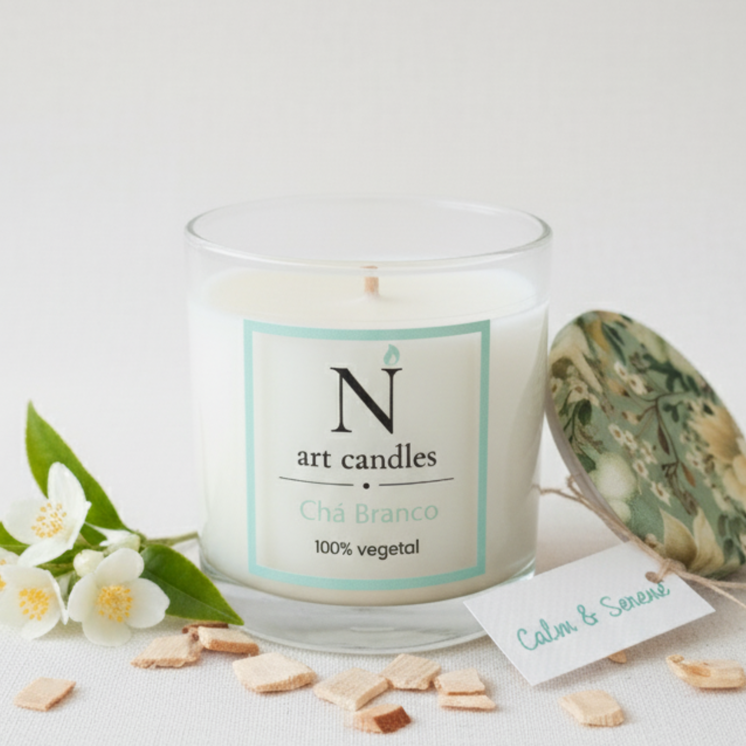 Envolva seus sentidos com a delicadeza da Vela Aromática Chá Branco. Feita 100% de ceras vegetais e pavio de algodão sem fio de cobre, que garante uma queima limpa, segura e prolongada. Disponível em dois tamanhos, com 265 ml e 156 ml. O perfume do Chá Branco traz uma sensação de serenidade e bem-estar, com notas suaves e puras que evocam a calma de um jardim em plena manhã. Seu toque floral e verde é perfeito para renovar as energias do ambiente e inspirar momentos de paz e clareza.